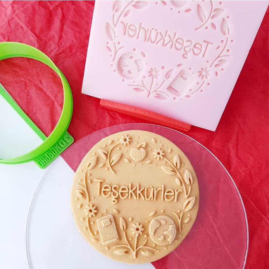 1. Yöntem: Yaklaşık 3 mm kalınlığında açılmış şeker hamuru üzerine MorphoMark kalıbını yerleştirerek, baskı uygulayınız. Sonrasında şeker hamurunuzu ayırıp uygun kesici ile kesip kurabiye ya da cupcake üzerrine uygulayınız.