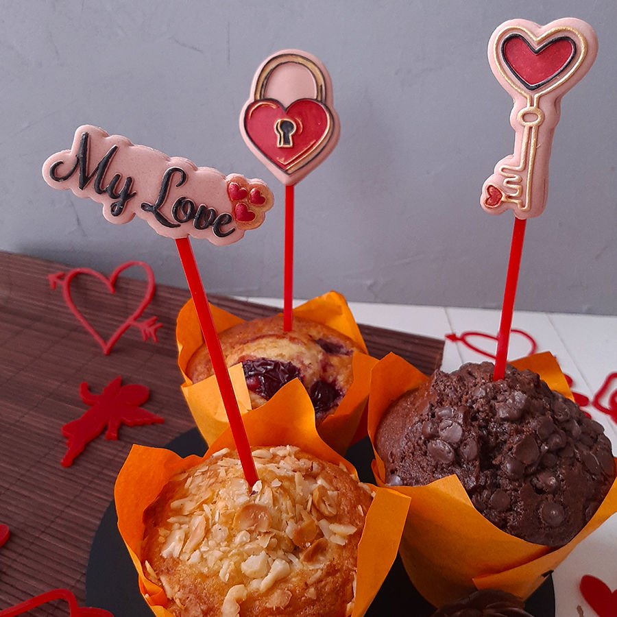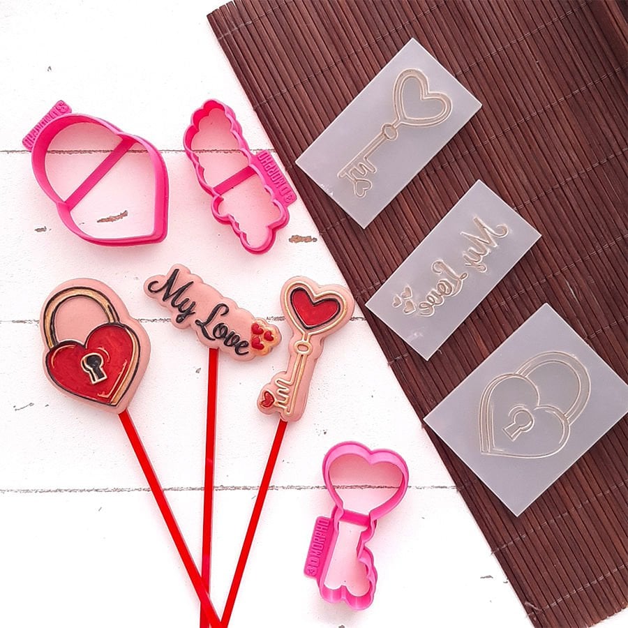 Kalp Anahtar-Kilit Mini Set Sevgililer Günü Kabartma Baskı